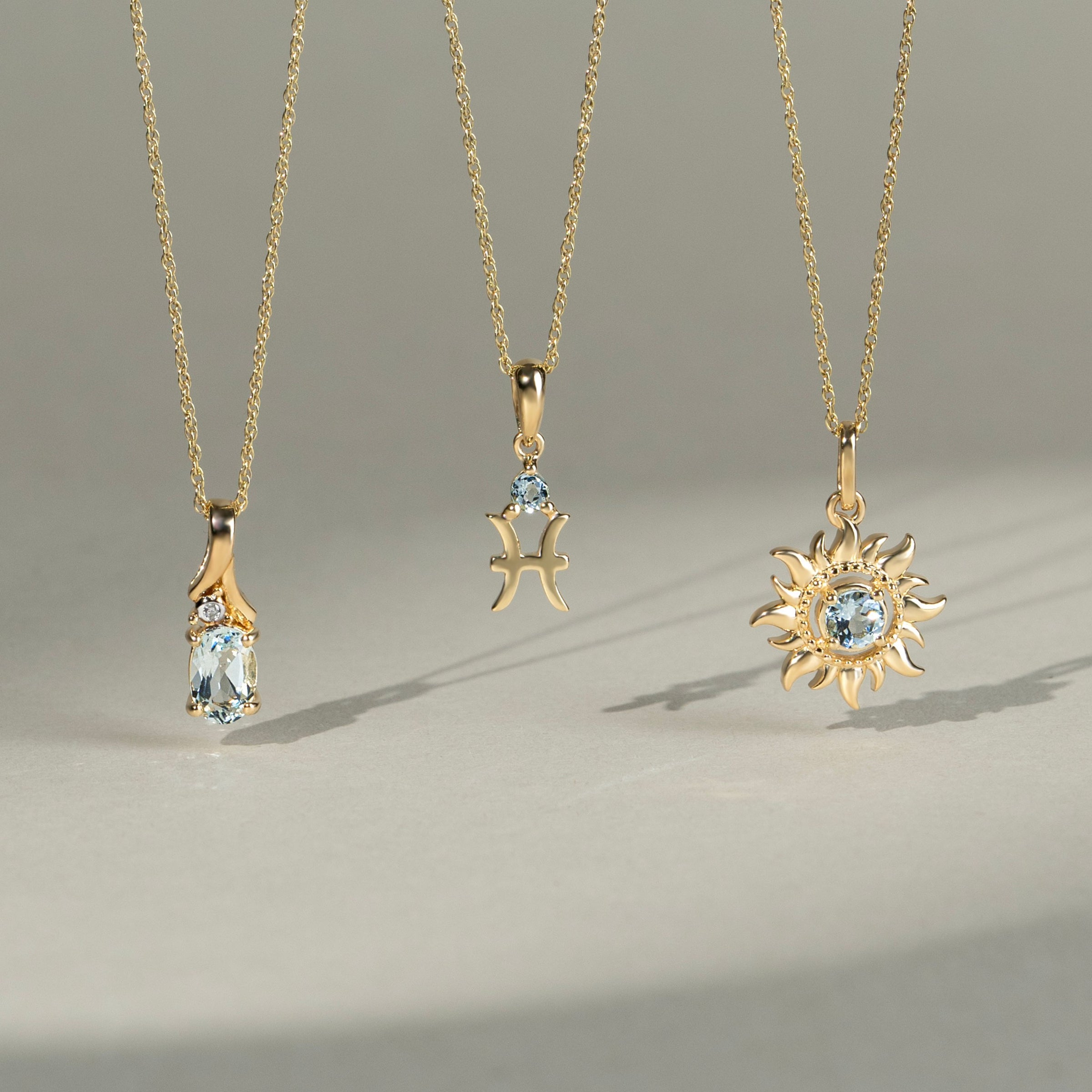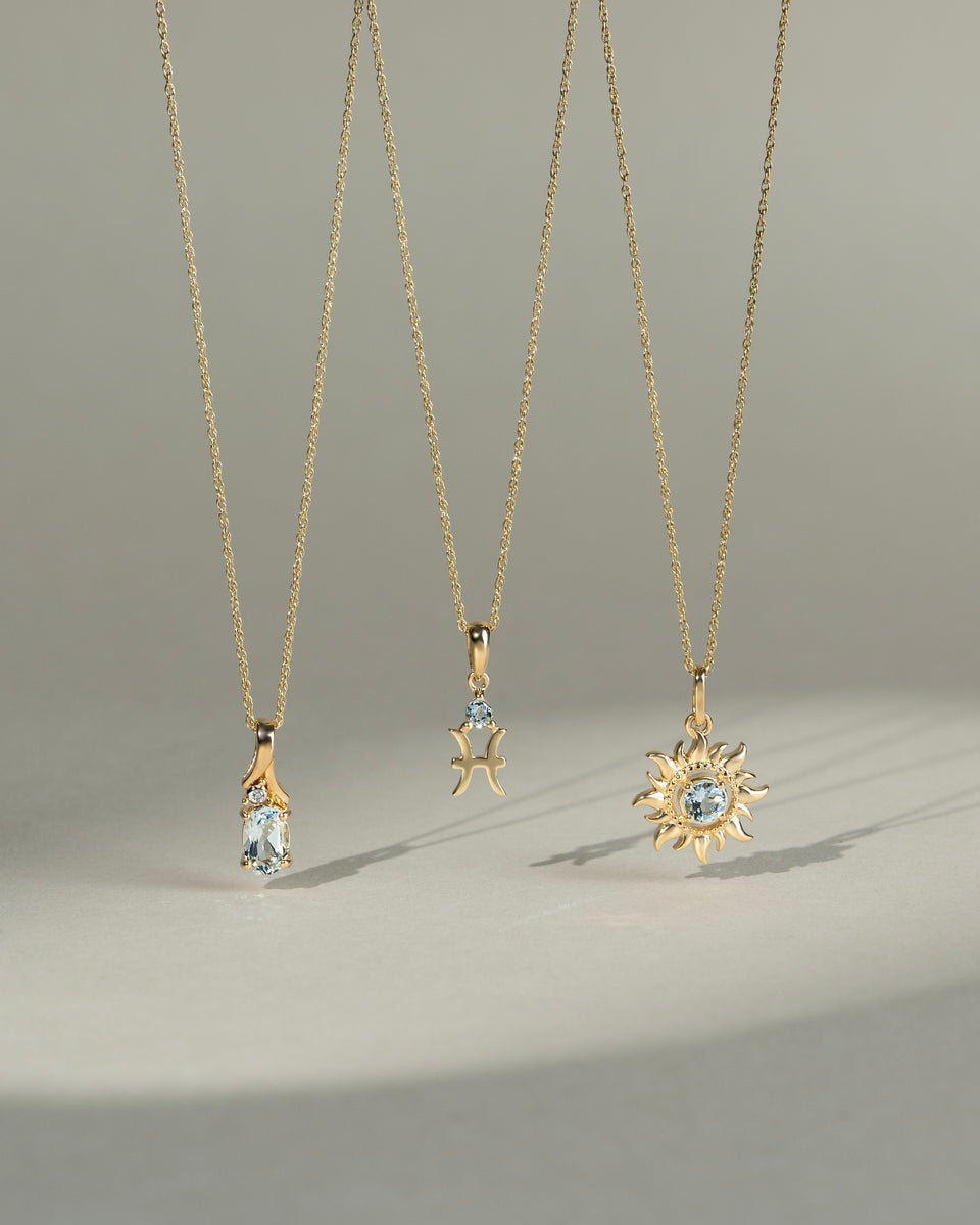 Inspired by the fascination with mother nature. The birthstone pendant collection, featuring a sun and beautiful gemstone.